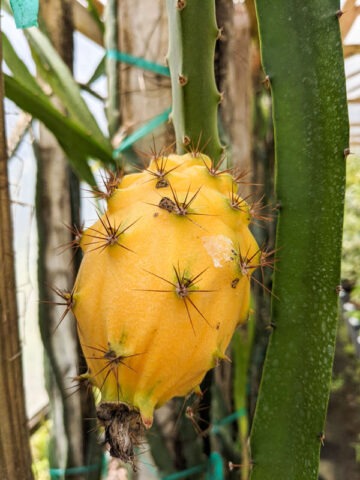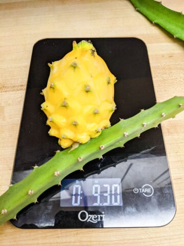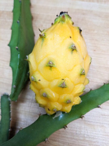 This large-fruiting Megalanthus sport is known for producing some of the biggest fruit among all Selenicereus varieties. The golden exterior opens to reveal white flesh that is exceptionally sweet, rich, and juicy — a true dessert fruit with standout flavor. Like other Megalanthus types, it is prized for its enormous, intensely fragrant night-blooming flowers. The brilliant white blooms open after sunset, fill the air with perfume, and fade by morning. Pollination is required for fruit set, rewarding attentive growers with impressive harvests.