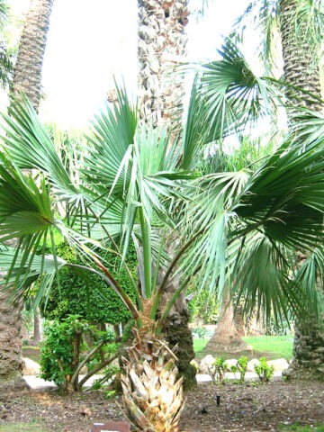 Bermuda Palmetto, Sabal bermudana, is a robust, stocky palm native exclusively to the island of Bermuda. Its sturdy trunk typically tops out around 30 to 33 feet tall, giving it a strong, grounded presence without becoming overly tall.