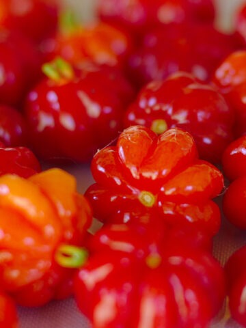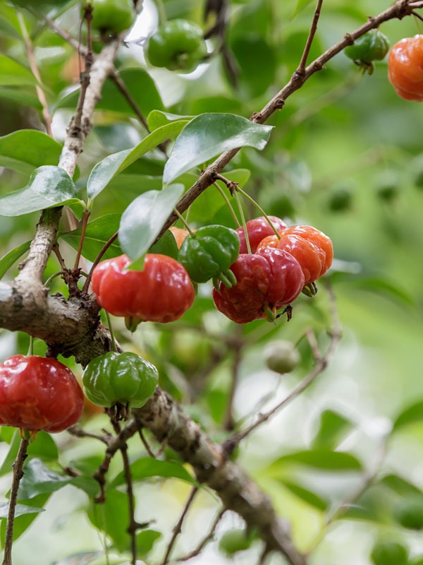 The shiny, miniature pumpkin-shaped cherries are deeply lobed and eye-catching. They begin green, transition through glowing shades of orange, and finally ripen to a bright, deep red. When fully ripe, the fruit is sweetest enjoyed fresh right off the plant. Surinam Cherry performs well in USDA Zones 9B to 11. With its colorful new growth, recurring blooms, and vibrant fruit, it is a standout hedge plant that offers both beauty and edible appeal.