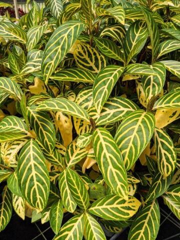 Sanchezia speciosa adapts well to container growing and performs reliably on patios and in protected garden areas. It thrives in bright light and remains content with partial sun, including locations that receive approximately half a day of direct sunlight. With its large, boldly striped leaves and manageable shrub-like form, Sanchezia speciosa adds scale and color to warm-climate gardens and container plantings. In cooler regions, it adapts well to container growing and can be moved indoors when temperatures drop. USDA Zones 9b–11