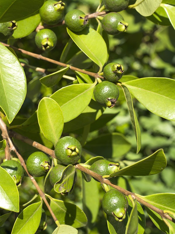 Popular Patio Plant – Lemon Guava, aka Yellow Strawberry Guava is a very high yield, semi cold-hardy, glossy leaved tree from Brazil, producing bite size fruit for eating fresh off the tree or canning and preserving.