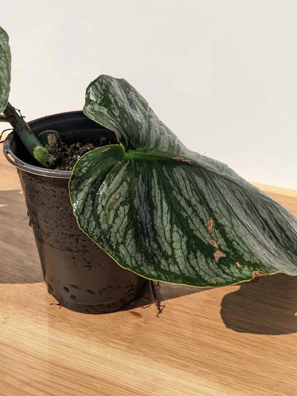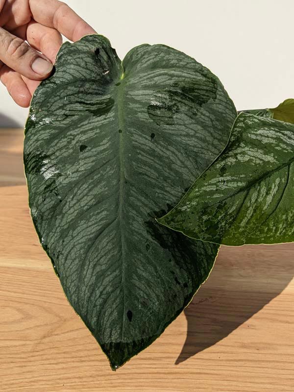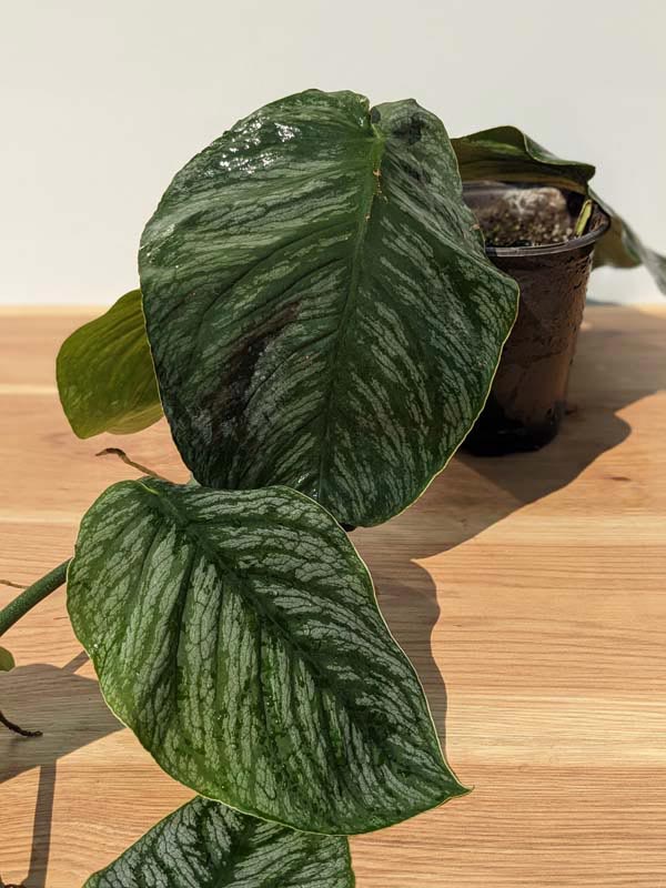The true excitement begins when it is allowed to climb and mature. As it gains height and establishes strong aerial roots, the nodes tighten, stems thicken, and leaves rapidly enlarge — eventually reaching 12 to 15 inches in diameter. The foliage transitions from smooth and silver to dramatically split and fenestrated, reminiscent of Monstera deliciosa but noticeably wilder and more exaggerated. The elongated lobes and untamed structure give the mature plant a raw, jungle aesthetic that serious collectors deeply admire.