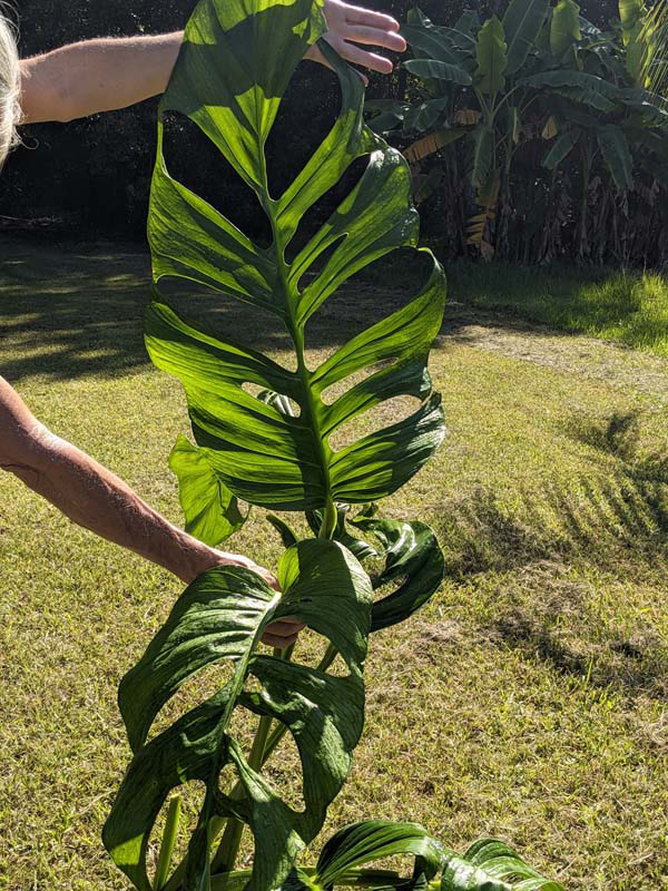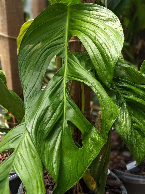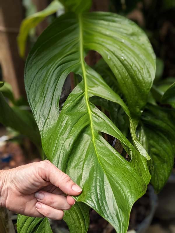 New leaves emerge pliable and slightly drooping, then gradually firm into a more upright, structured position as they mature. Extended petioles hold the foliage distinctly away from the vine, creating an open, architectural look rather than a compact stack of leaves. To unlock its full potential, this plant should be allowed to climb. When grown on a moss pole, totem, or tree, node spacing shortens and leaf size increases dramatically. Vertical growth encourages stronger structure and more pronounced fenestration.