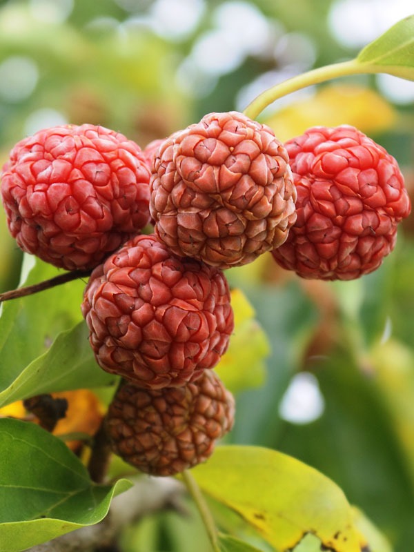 Mandarin Melonberry, commonly known as the Chinese Che Tree, is a distinctive fruiting tree valued for its bright red, clustered fruit and dependable performance. The fruit is soft, chewy, and notably sweet when fully ripe, often compared in flavor to a blend of mulberry and fig. The tree has a long history of cultivation in China for both culinary and traditional uses.