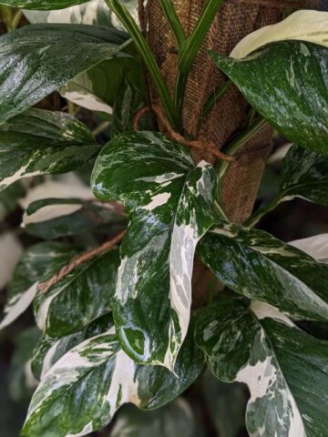 This is a fast-growing and easy-to-cultivate Monstera. When provided with vertical support such as a moss pole or totem, node spacing shortens and leaf size increases. As it gains height, the foliage becomes fuller and more dramatic. Thriving in bright, indirect light with consistent moisture and good drainage, Monstera lechleriana ‘Albo Variegata’ develops into a robust climbing specimen. With strong root systems and steady upward growth, it offers both dependable performance and highly decorative foliage for collectors and indoor growers alike.