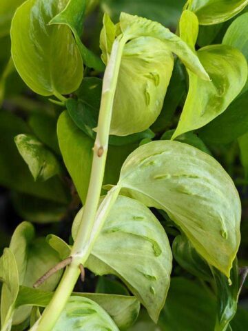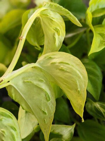 Japan Champs Elysees Pothos is a rare cultivar prized for its striking lemon-lime foliage and unusual texture. The leaves not only glow with fresh citrus tones, but also feature distinctive crests and ridges along their undersides—an uncommon trait that sets it apart from other pothos varieties.