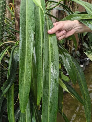 This is a swift and determined climber. When given vertical support, its strong, bayonet-style leaves can stretch up to 3 feet in length at maturity, creating a bold vertical display. The foliage has a firm texture and a rich green tone that enhances its dramatic silhouette as it ascends.