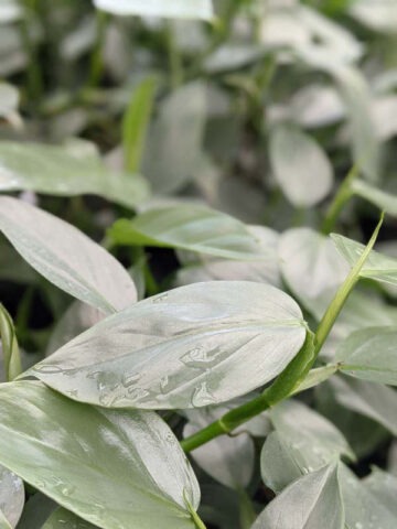 Philodendron hastatum ‘Silvery Blue’ is a distinctive climbing variety recognized for its smooth, arrow-shaped leaves in a cool silvery-blue tone. The subtle metallic sheen gives the foliage a clean, modern appearance that contrasts well with darker green plants in mixed collections.