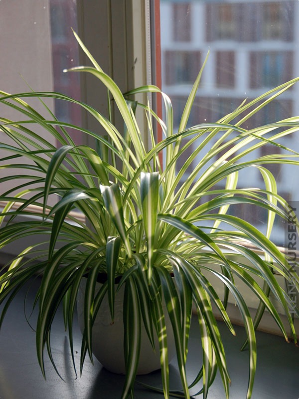 The long, arching foliage grows in a graceful fountain shape, adding movement and softness whether placed in a hanging basket, elevated planter, or decorative container. As a clump-forming plant, it gradually fills out into a lush, balanced specimen, and mature plants often produce slender stems with small plantlets that can be propagated with ease.