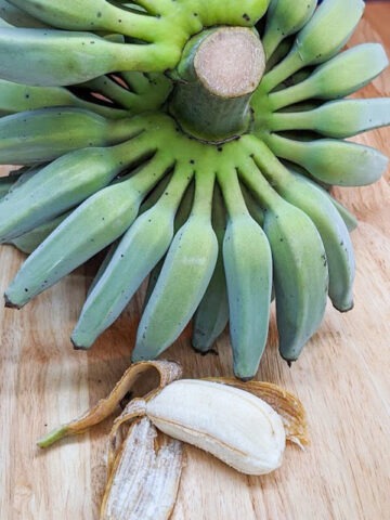 Variegated Dwarf Namwah has a relatively short fruiting cycle and strong cold tolerance for a dessert banana. In Zone 8 conditions, it has consistently produced an annual crop with proper care. Best grown in full sun with rich, well-drained soil and consistent moisture, it performs well in USDA Zones 8B to 11.