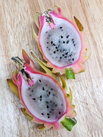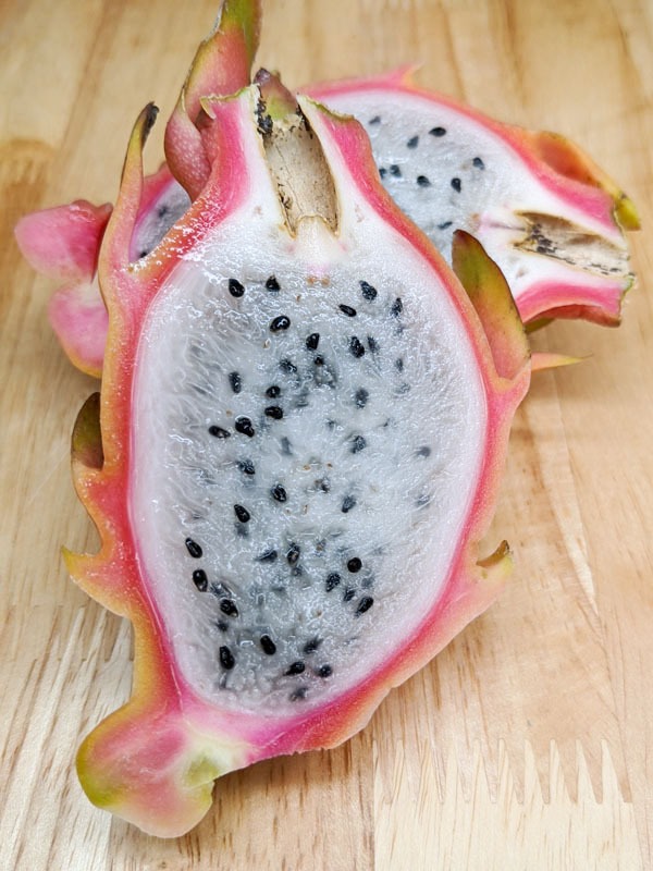 Sweetest dragon we have grown to date. – The fruits produced by Yellow Tail Thai Dragon Fruit are reddish-orange with yellowish tips in color with a white, delicious flesh inside that is edible and sweet. Yellow Tail Thai is a wonderful mid-high yield, self pollinating variety, small in size weighing on average 0.3 – 0.7 lbs. Easily adapted to a variety of growing conditions and soils, this beautiful night blooming cactus produces fruit best when allowed to climb on a burlap wrapped totem, trellis or your favorite tree.